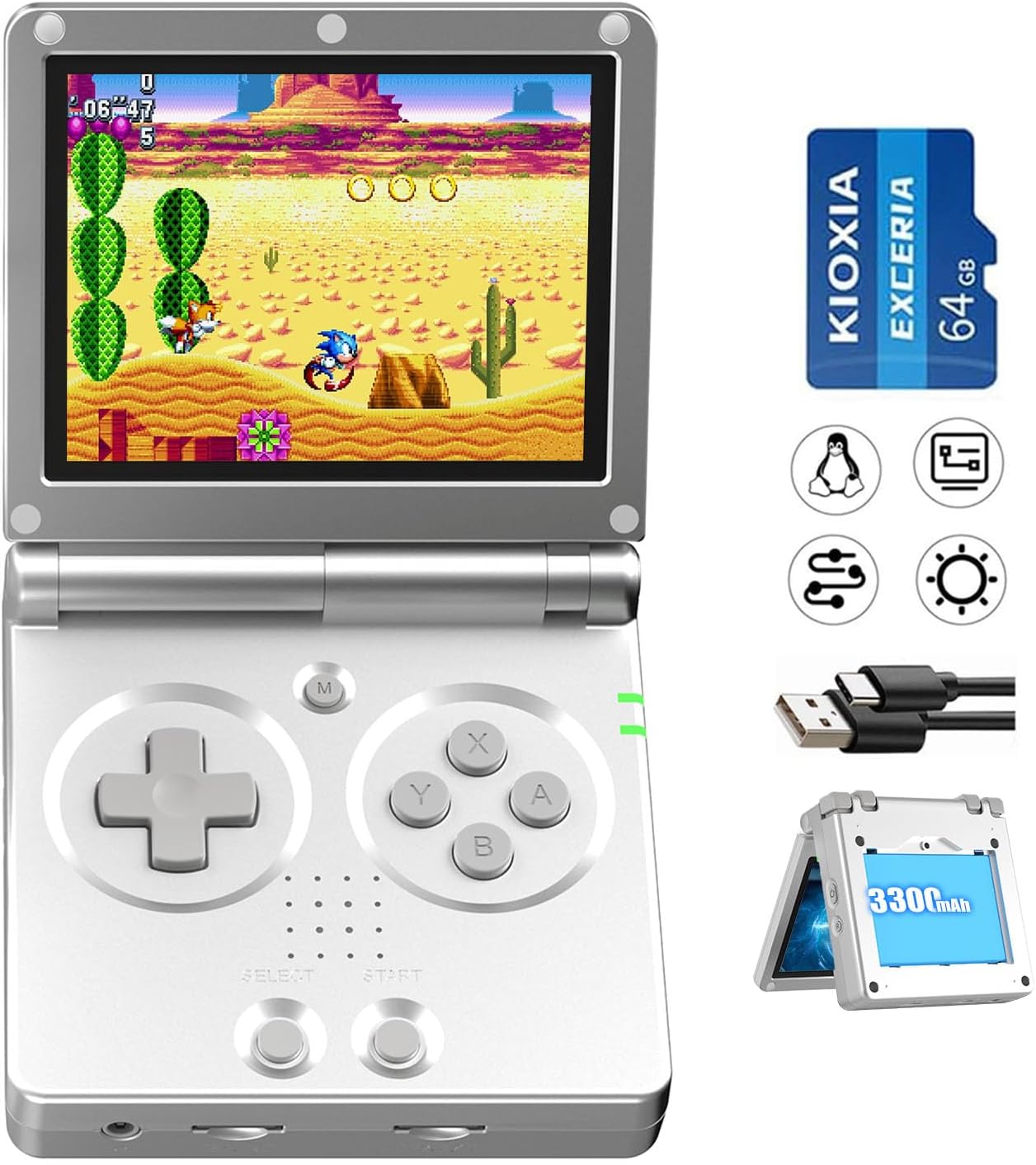 RG35XXSP Flip Portable Retro Handheld Game Console,RG35XXSP 3.5 Inch IPS Screen Linux System with 64G TF Card Pre-Installed 5532 Games,Clamshell Games Consoles Supports 5G WiFi Bluetooth HDMI xxsp